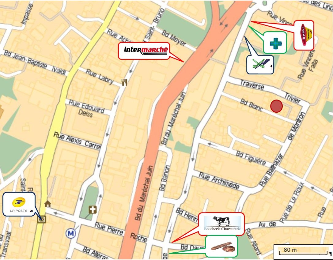 La station de métro des Chartreux se situe à 618 m à 7 mn à pied.